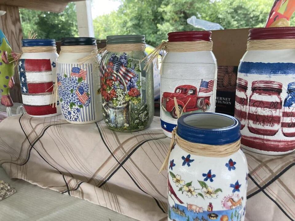Sandra (B & B Eggs and Crafts) – Handcrafted decoupage jar vases that add a personal touch to any home.