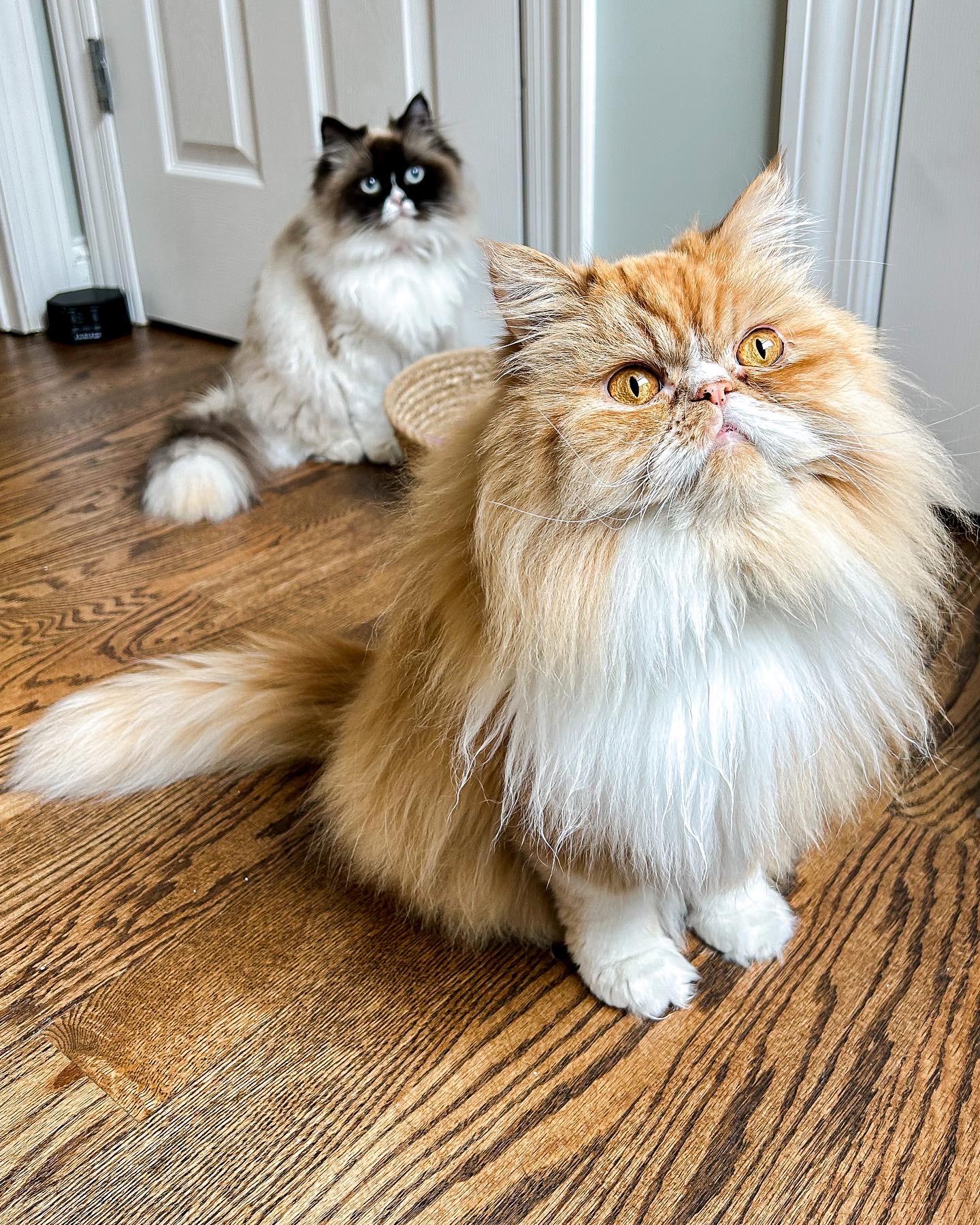 Persian cats are beloved for their beautiful long fur, which requires regular grooming to maintain its elegance. Stanley, with his striking orange coat, embodies the classic Persian aesthetics, complete with a round face and short muzzle. This breed is known for its calm, affectionate nature, often forming strong bonds with their human caregivers.